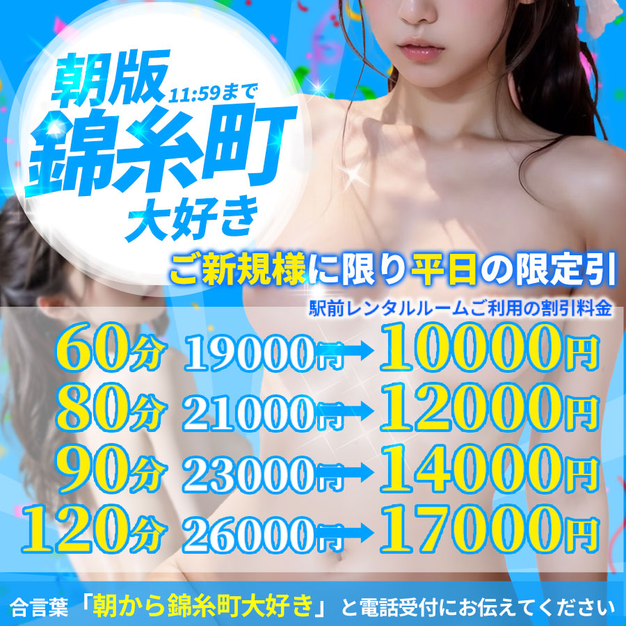 合言葉「朝から錦糸町大好き」と電話受付にお伝えてください